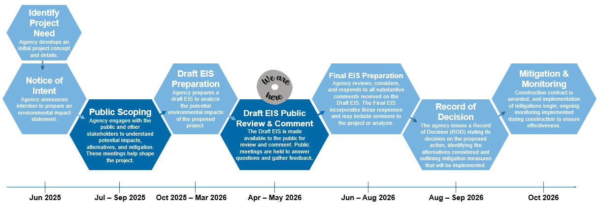 Based on the agreed NEPA and Cultural Resources SOPs between FSM (including Yap State) and the U.S., public involvement is a fundamental aspect of the NEPA and NHPA Section 402 processes. The DoW appreciates the public’s participation in the EIS process. The schedule below presents the major milestones of the Yap Airport and Seaport EIS process, including the phases where there are opportunities for public review and comment. Following the schedule there is a brief description of each milestone.